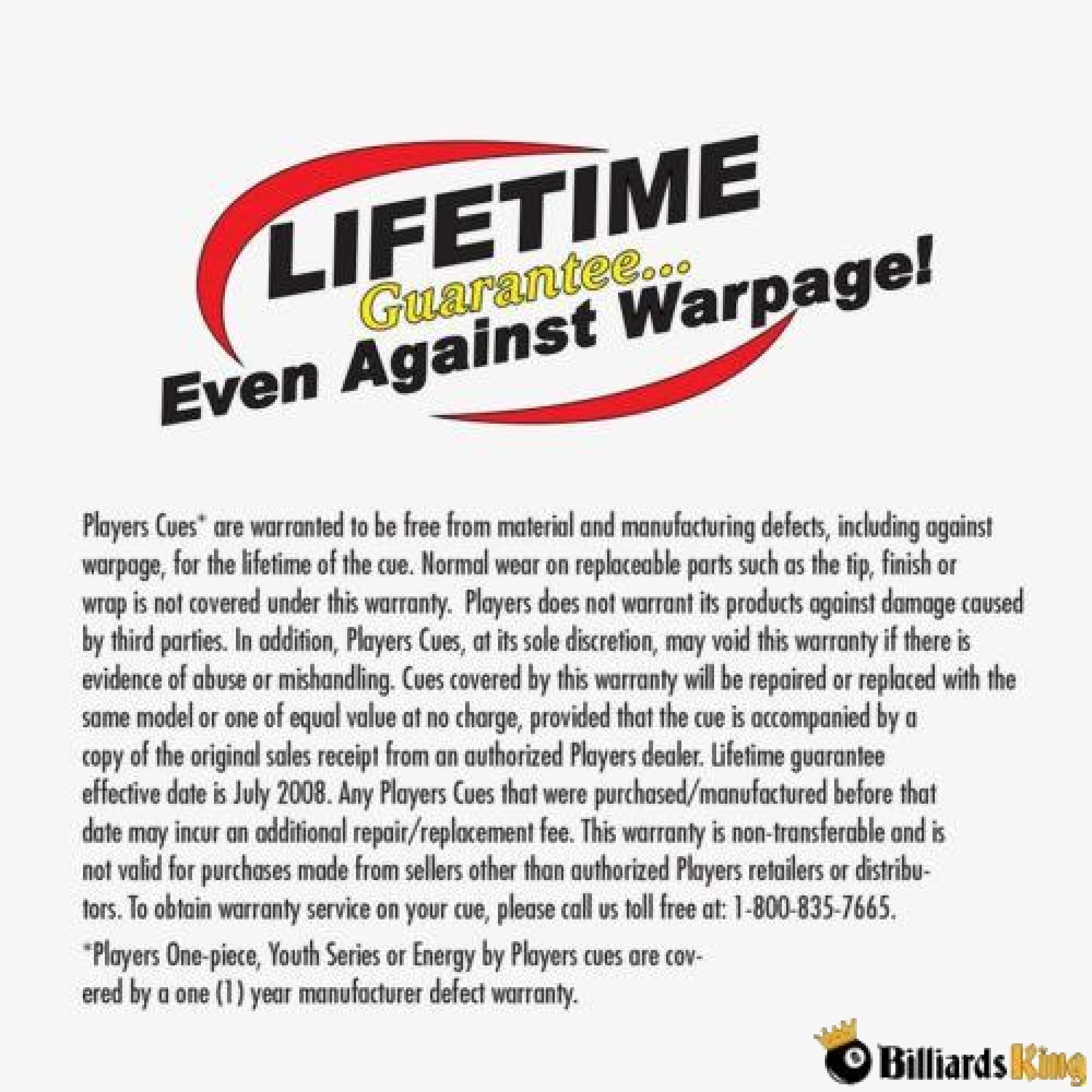 - Players Lifetime Guarantee