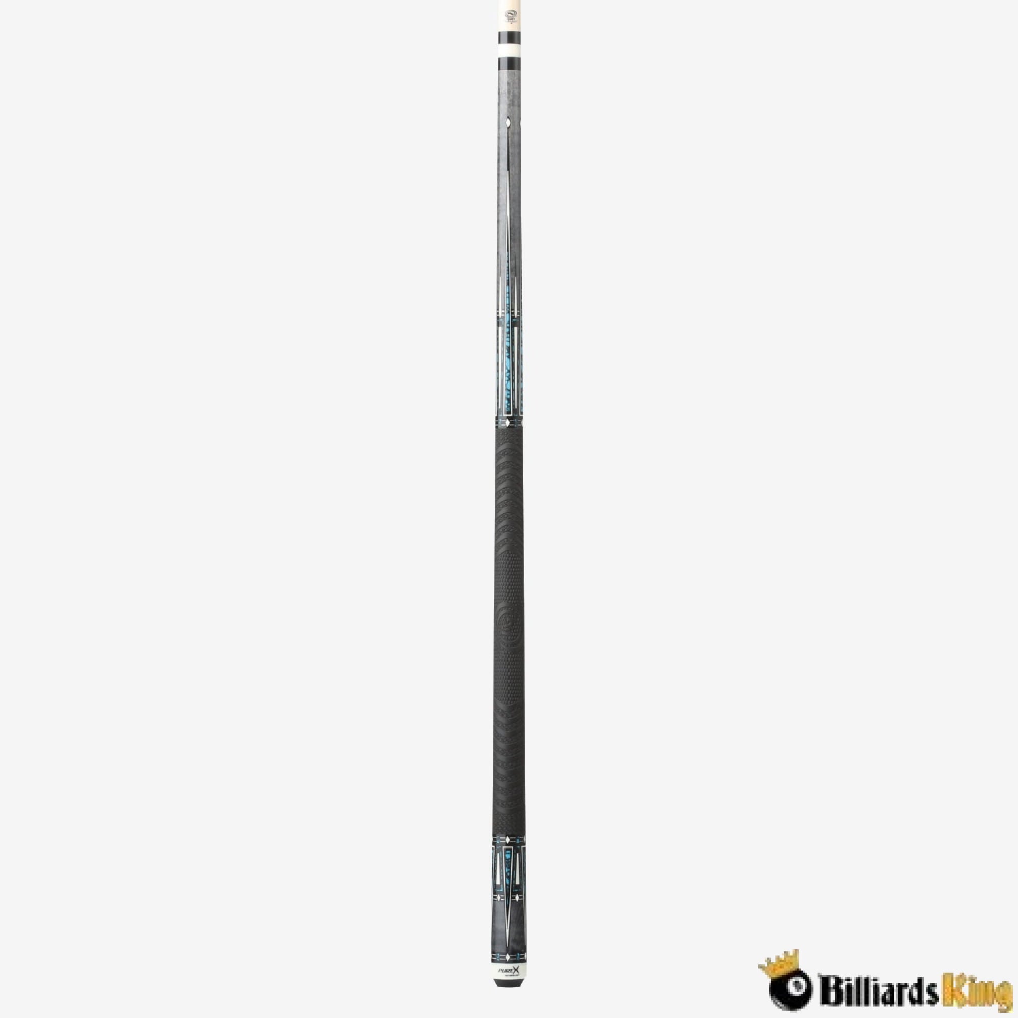 This modern Pure X® cue features Grey Stained Curly Maple, Imt. Bone & Blue Recon Graphic, MZ Grip Technology Wrap, and Pure X® HXT Low Deflection Technology Shaft.